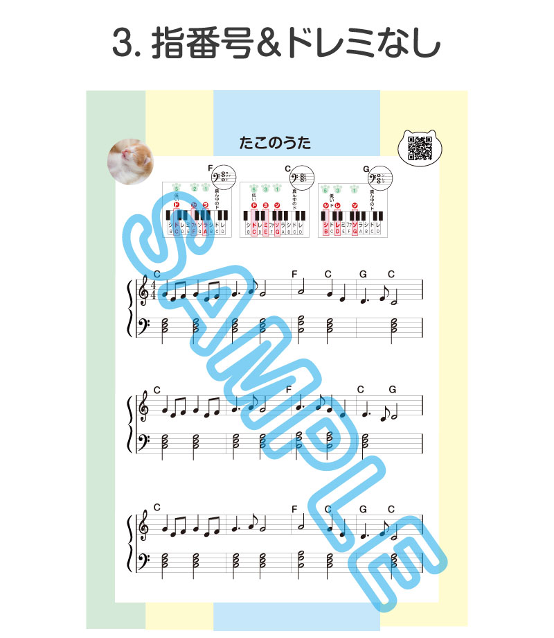 たこのうた 楽譜(指番号&ドレミ付きの楽譜・指番号のみの楽譜・指番号&ドレミなしの楽譜)3枚セット!