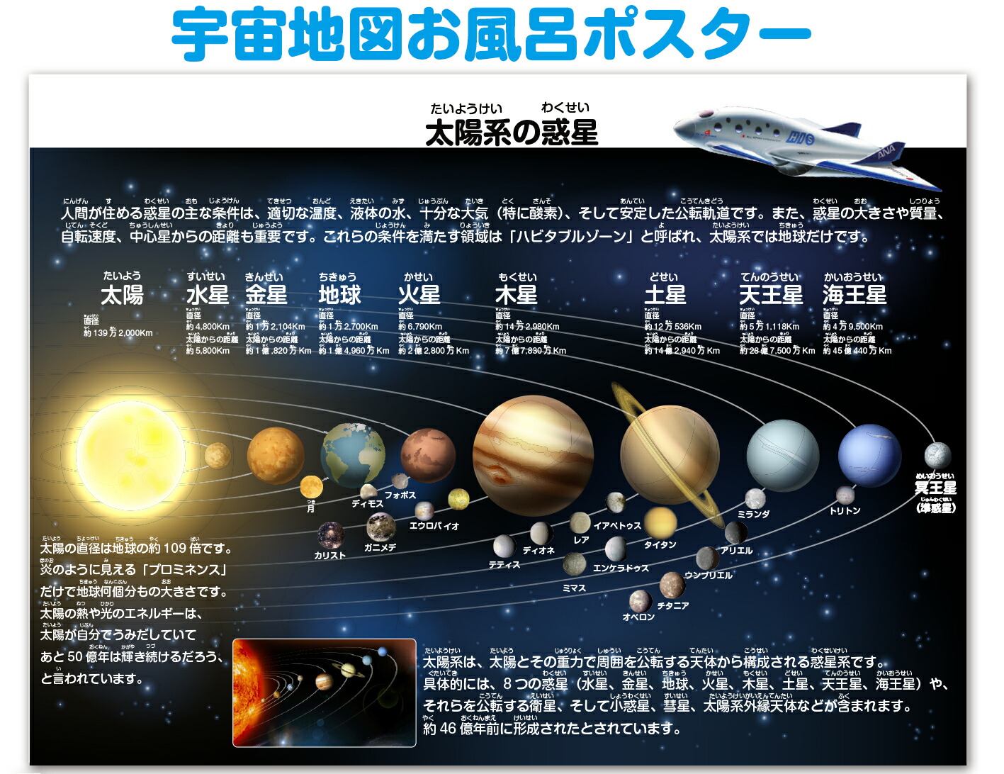世界地図&宇宙地図(太陽系)お風呂ポスター 2枚セット