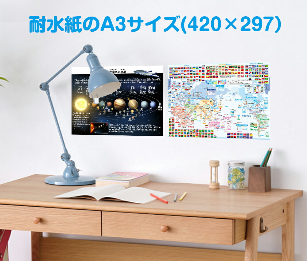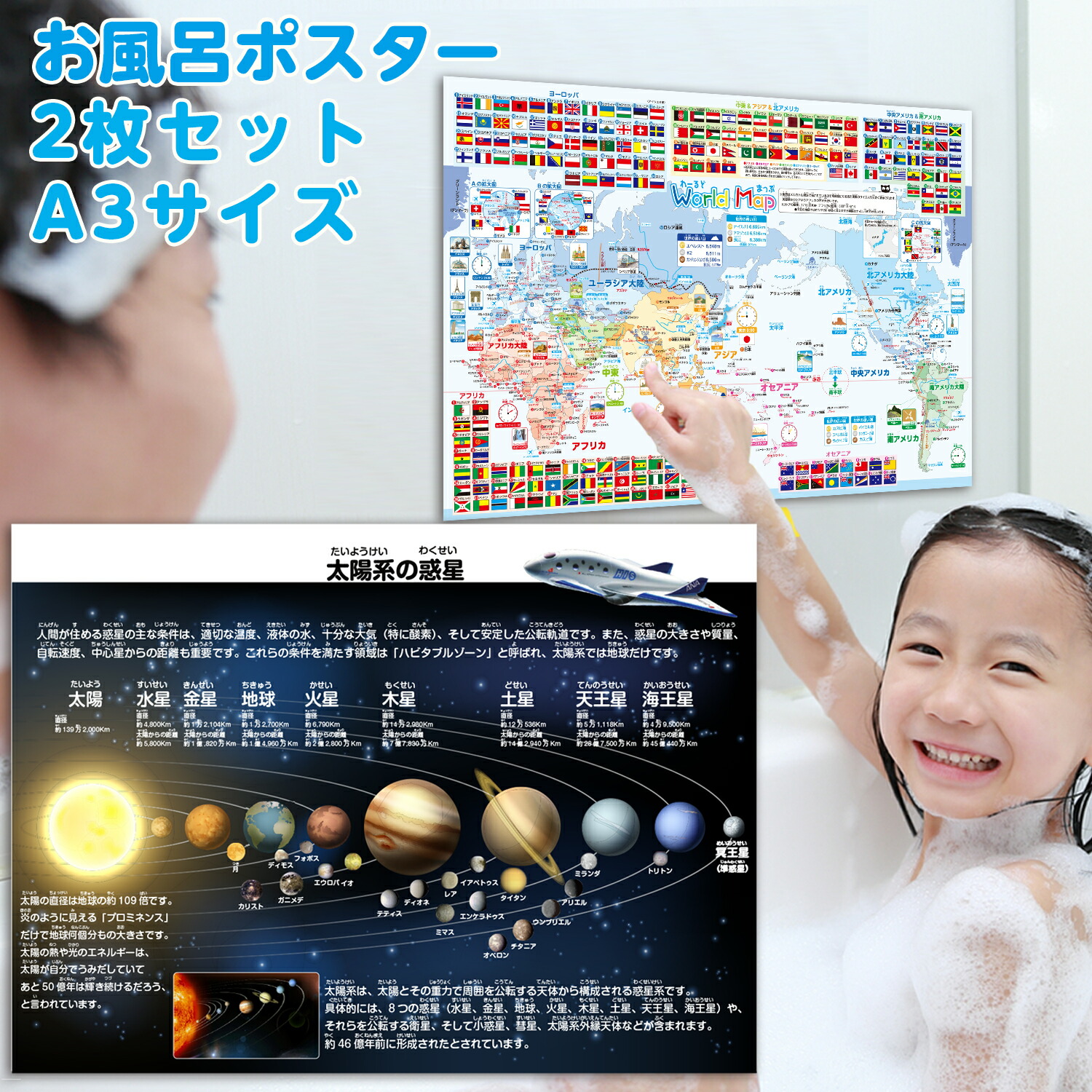 - 世界地図&宇宙地図(太陽系)お風呂ポスター 2枚セット