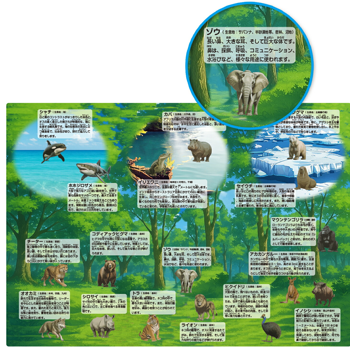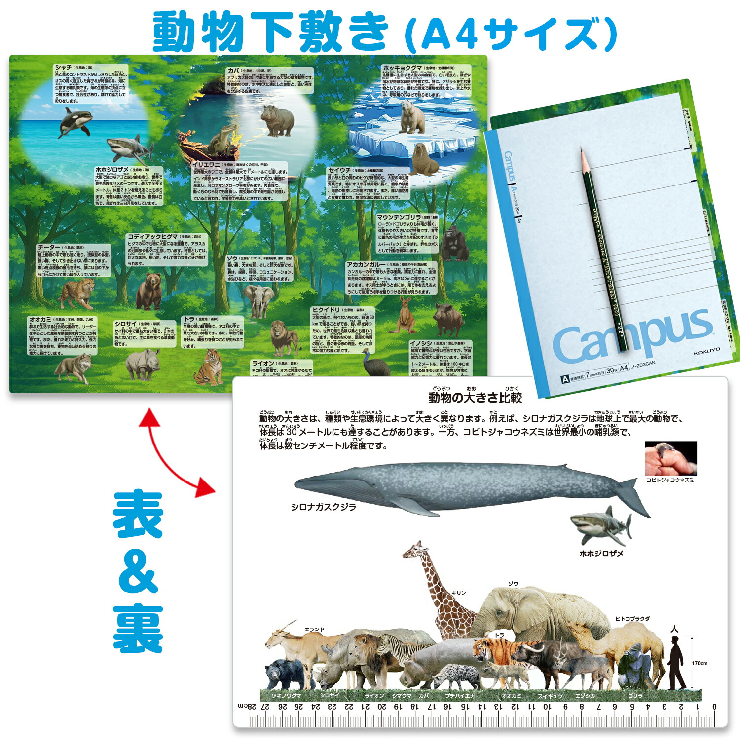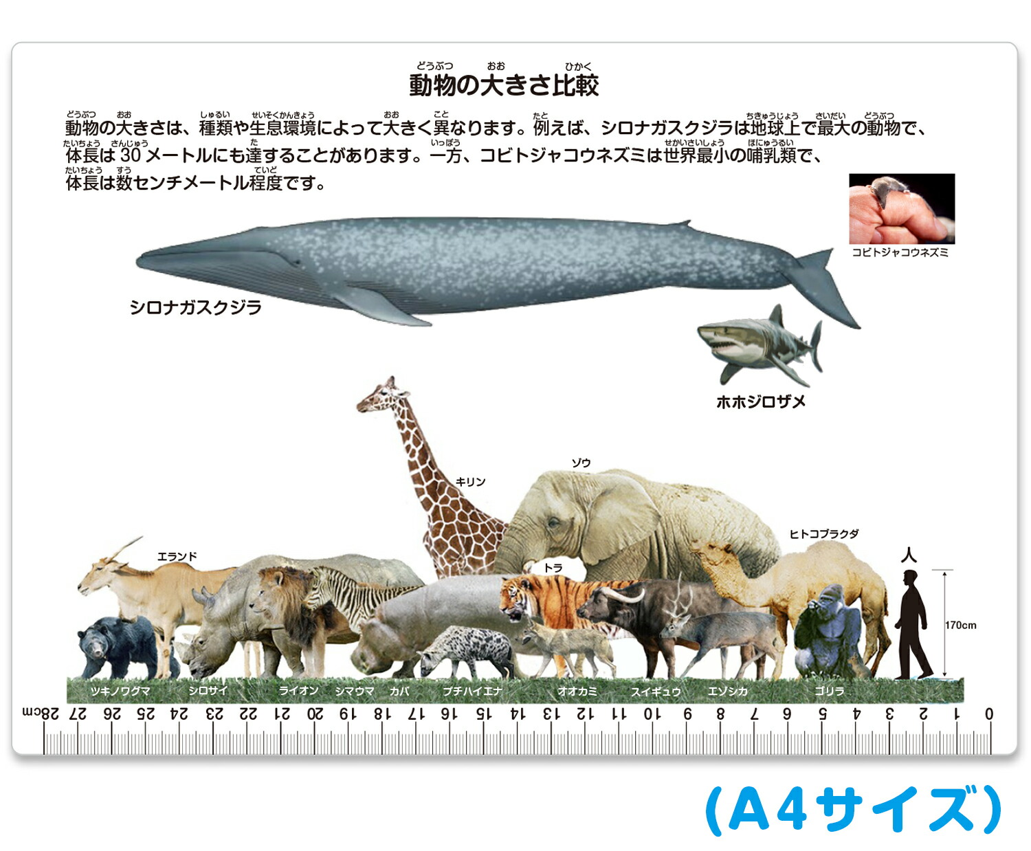 動物の情報や、大きさ比較、分布などが記載された下敷きです。