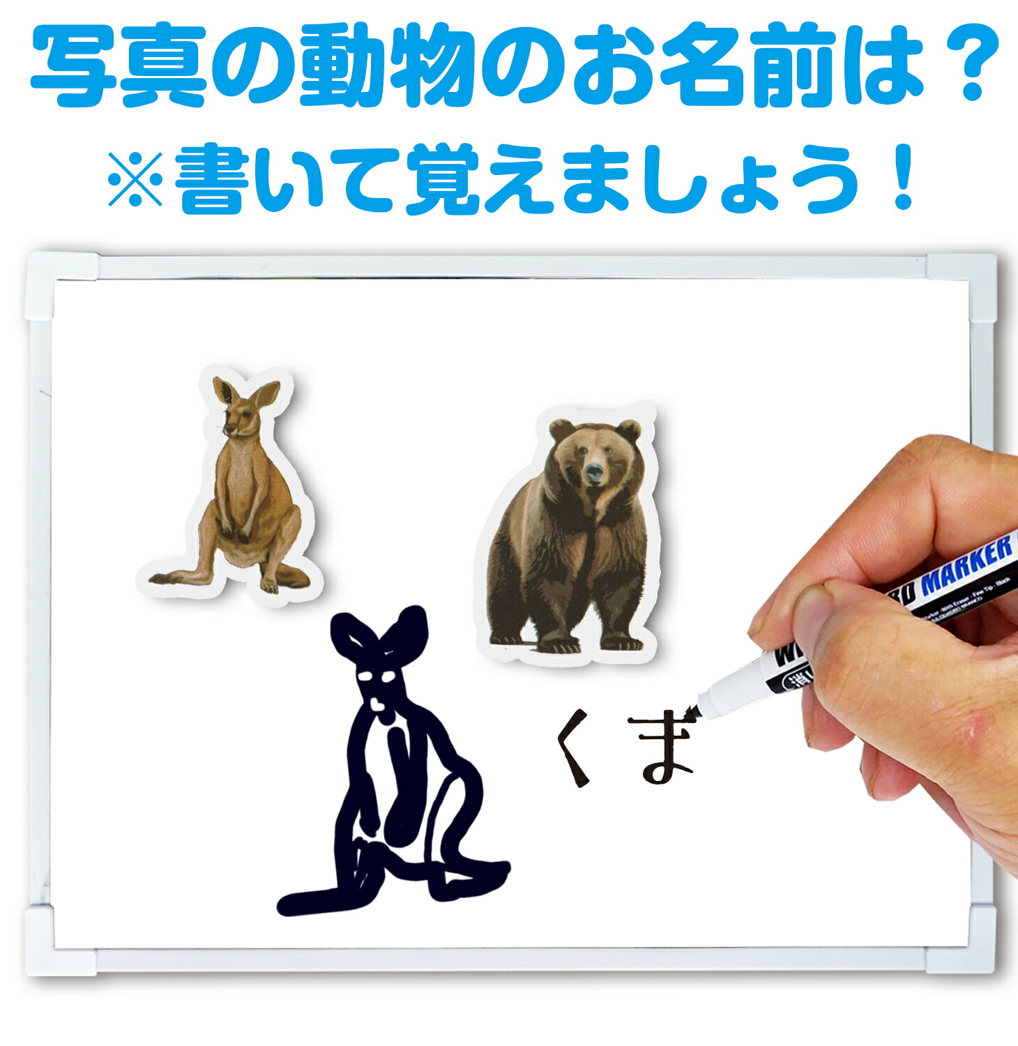 動物マグネットをボードのそれぞれの動物の名前を書いてあるところに置いて動物の名前を覚えよう!
