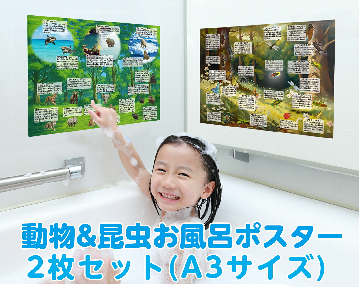 動物と昆虫のお風呂ポスターの2枚セットです。