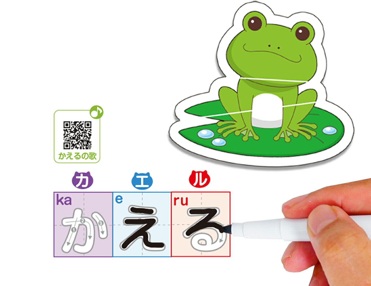 あいうえお表は、点線をなぞってかえるの文字を書く練習ができます。