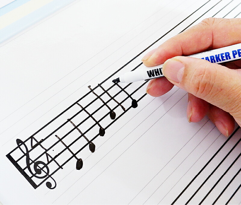 五線譜ホワイトボードにはマーカで音符や注意事項などを書くことができます。