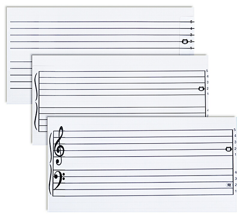 ※付属のカードを使えば下記の3パターンの五線譜ホワイトボードが作れます。