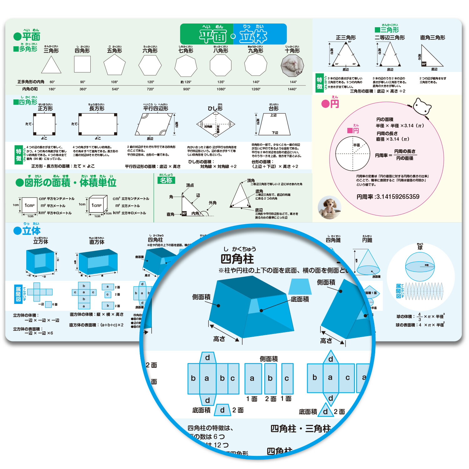 裏面は小学校で習う算数(分数・単位・平面立体)を学ぶことが出来ます。