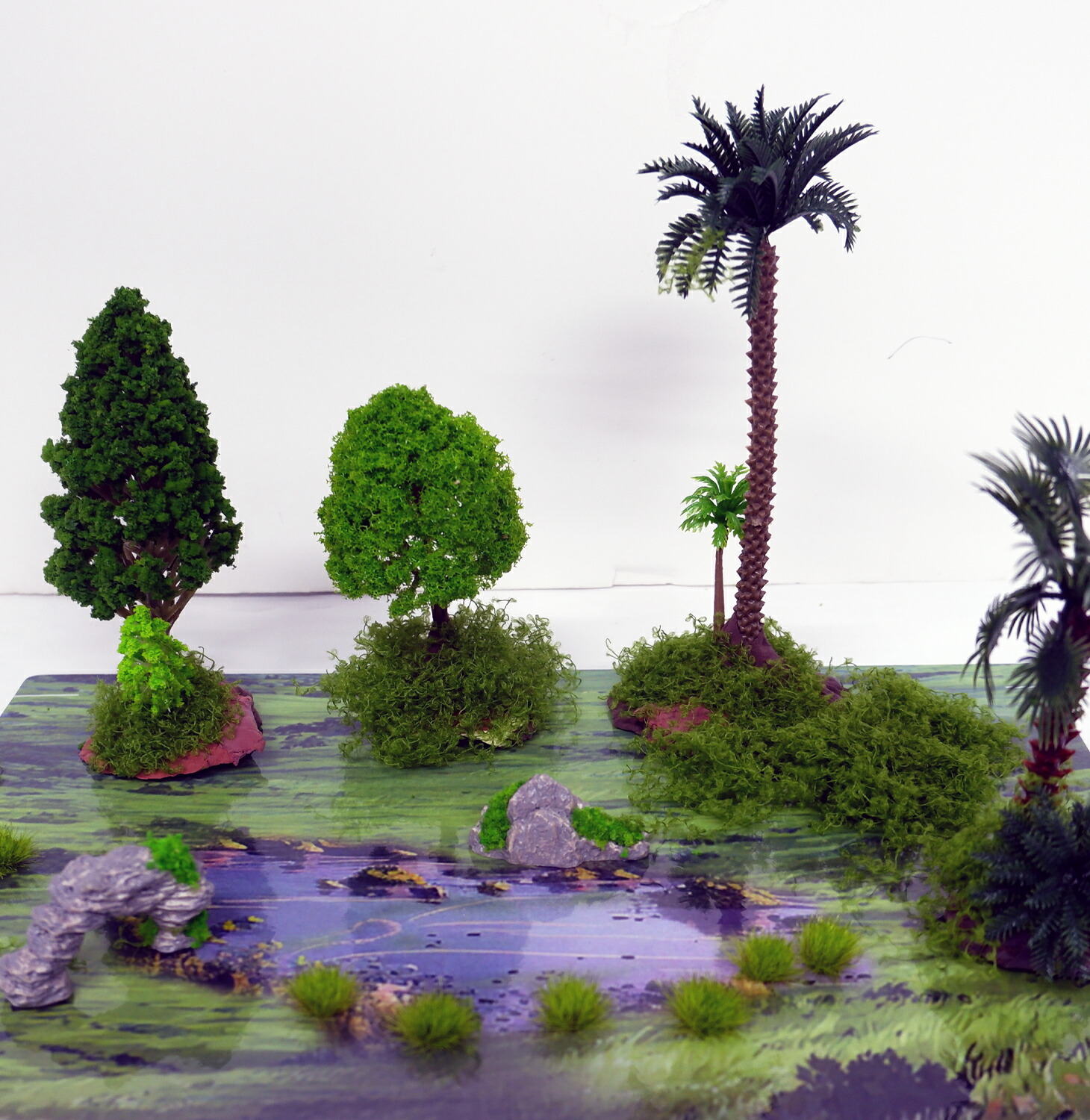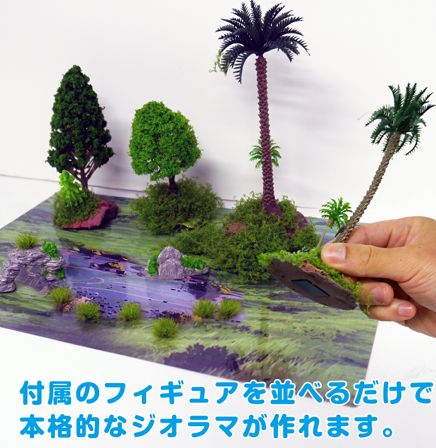 台紙の上に置くだけ簡単にオリジナルジオラマを作ることができるキットです。