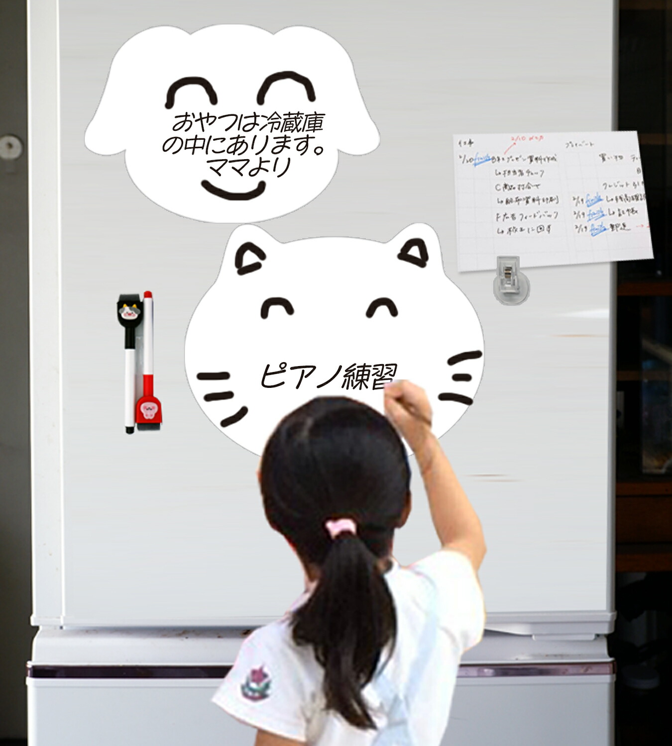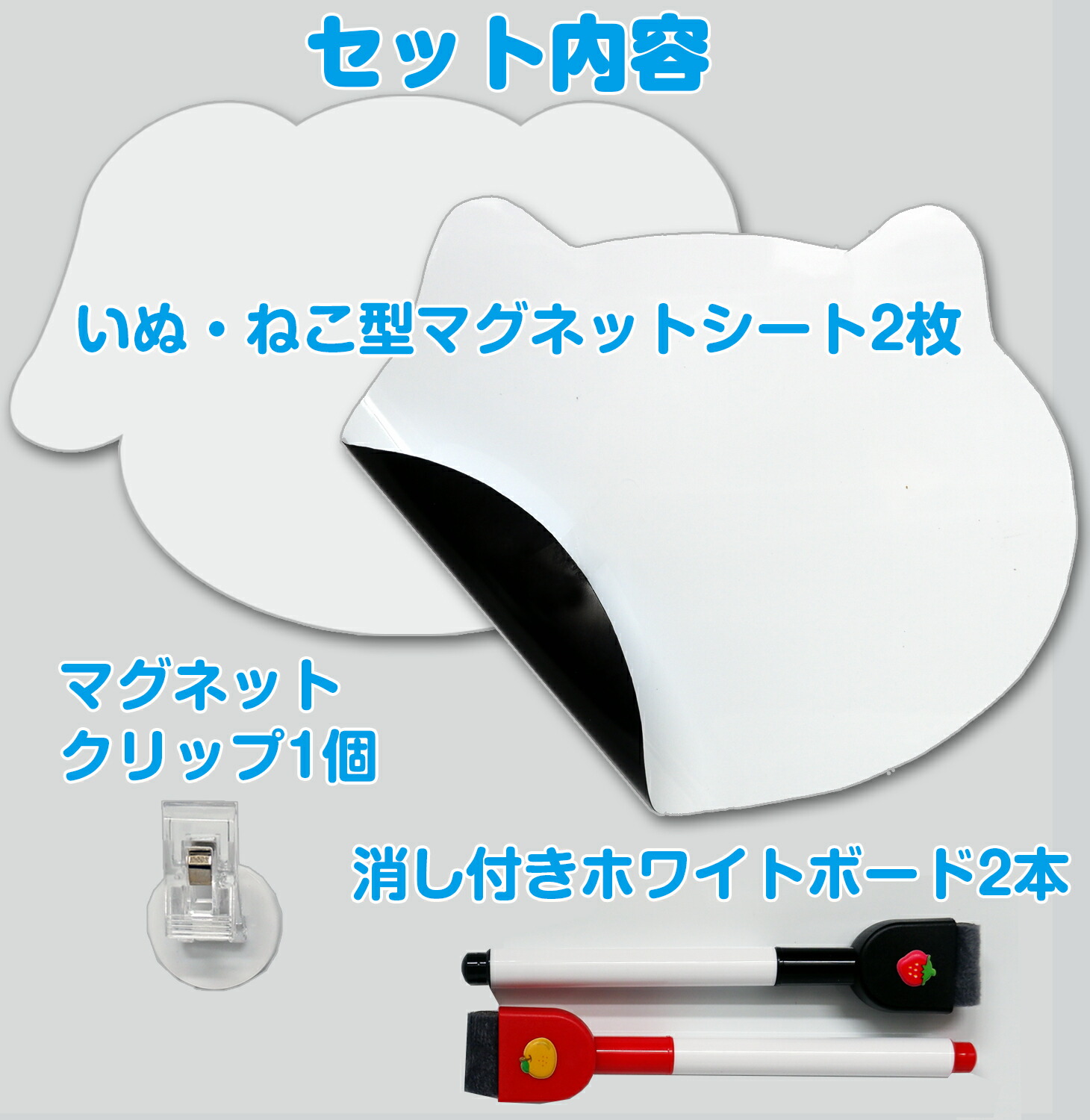 書いて消せる!いぬ・ねこマグネットシート2枚セットです。