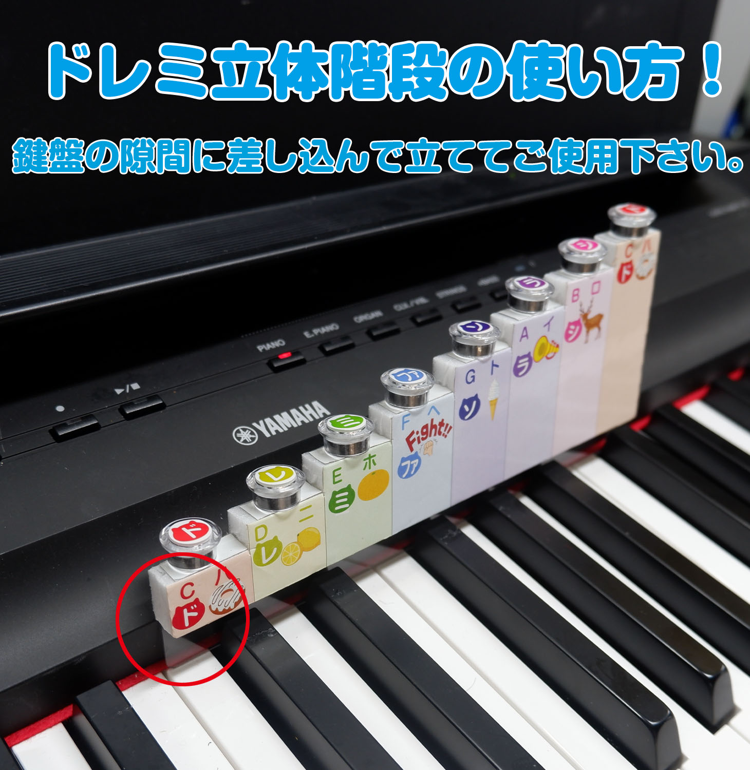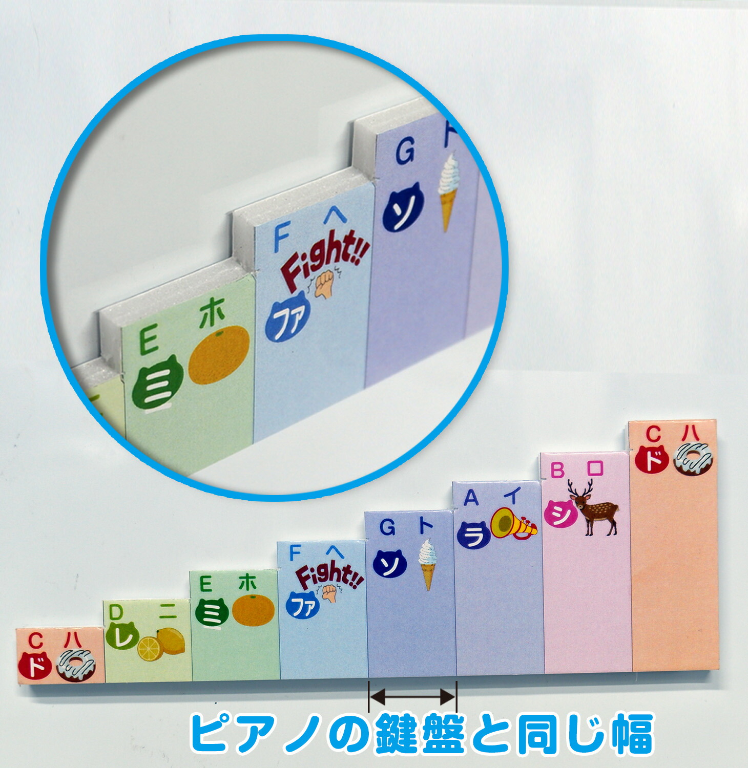 ピアノの鍵盤奥の隙間に差し込むと、ドレミ補助として使用することができます。