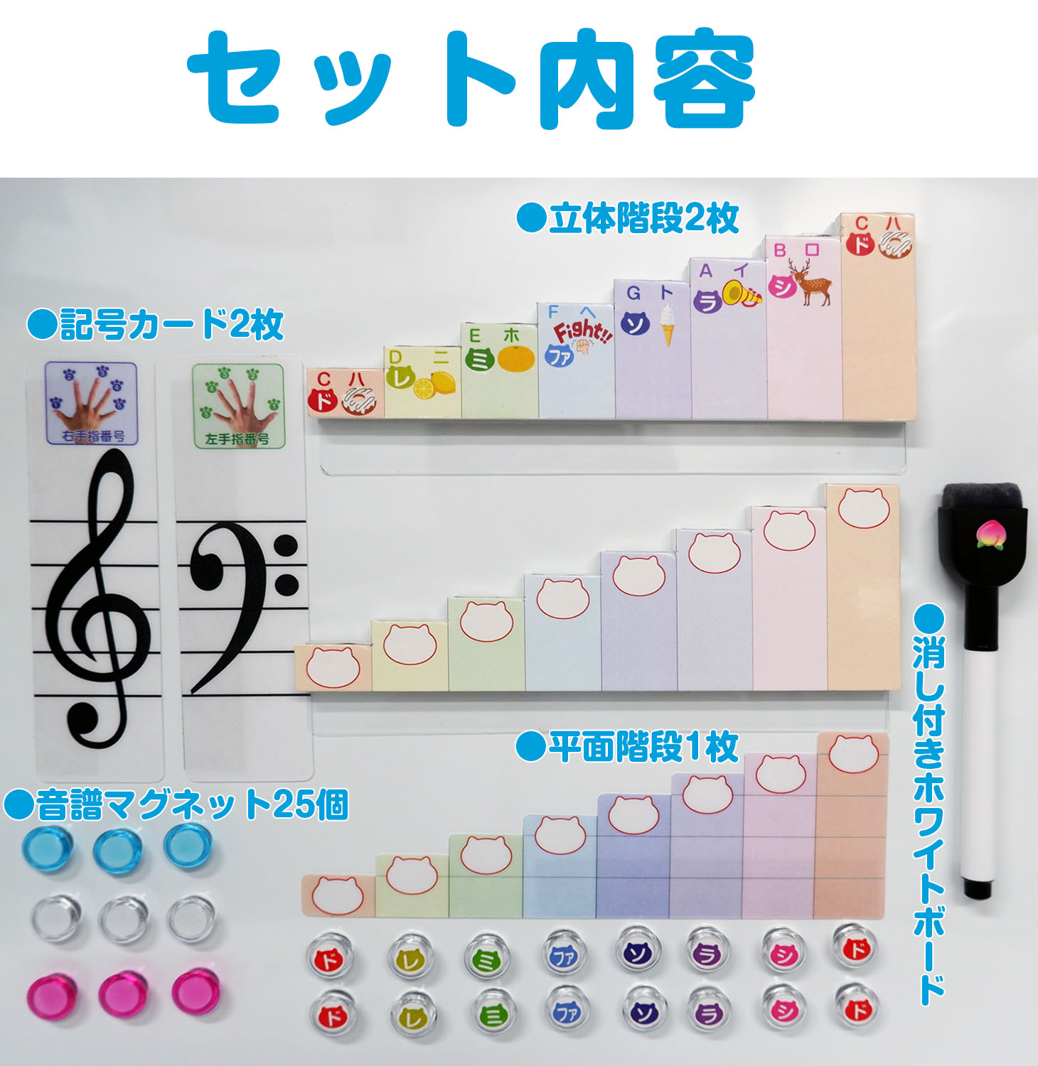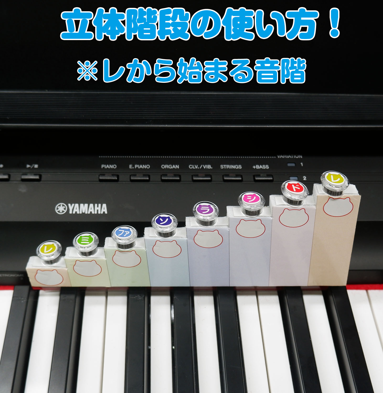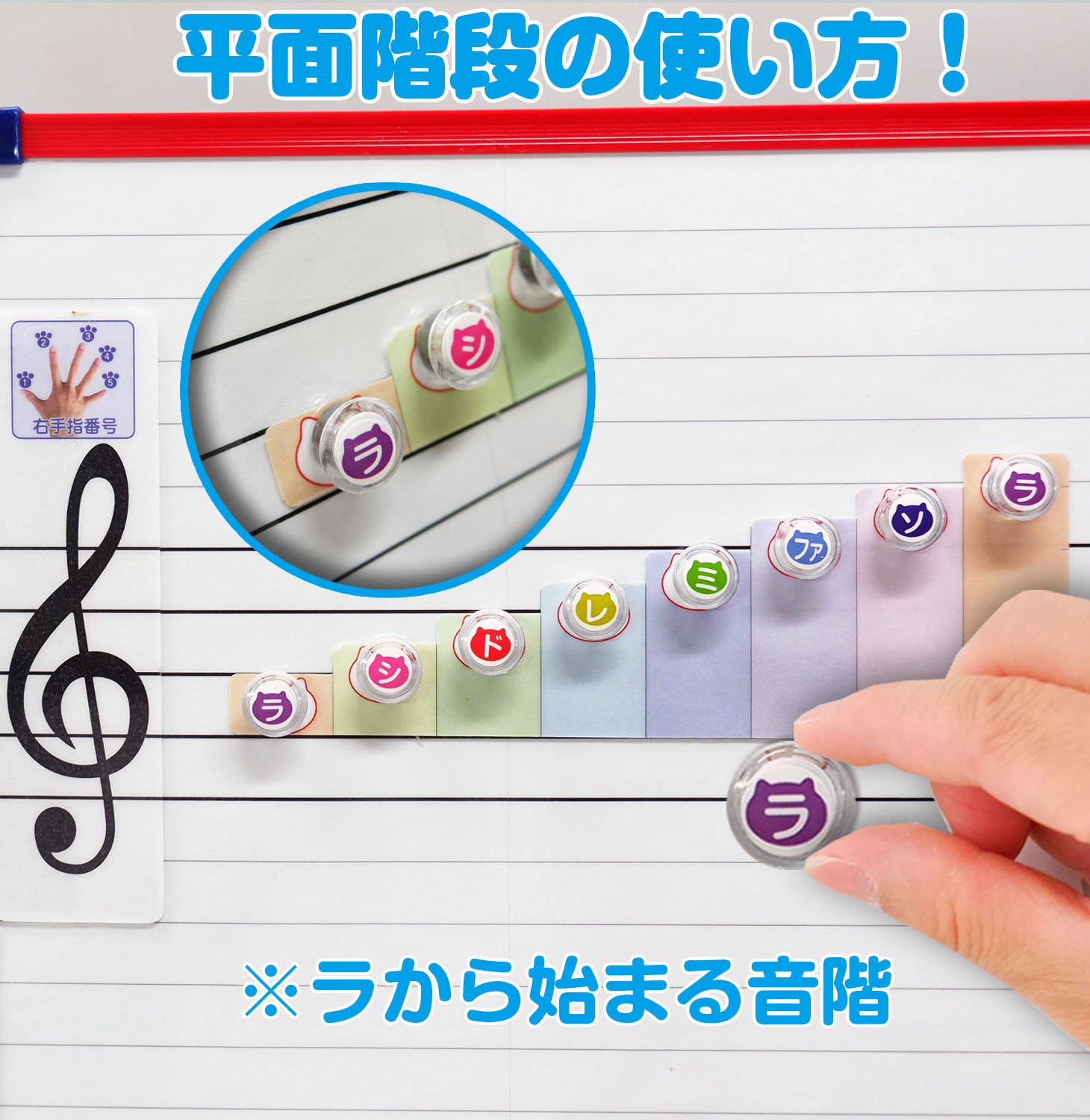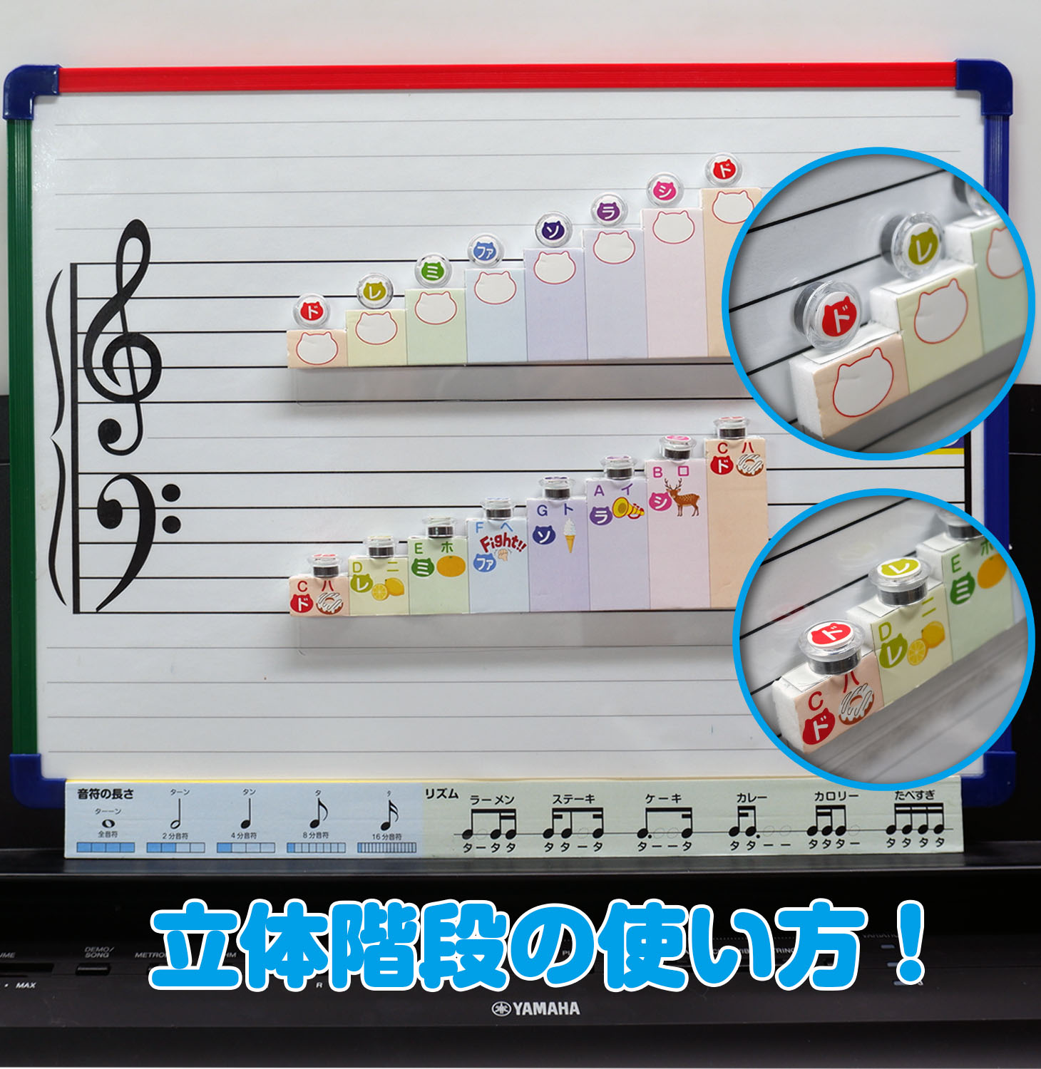 ドレミ階段は、音の高低を視覚的に表現することで「階段みたいになっているね」「だんだん高くなっている!」など子どもが自分たちで発見したり、スムーズに説明することができるアイテムです。