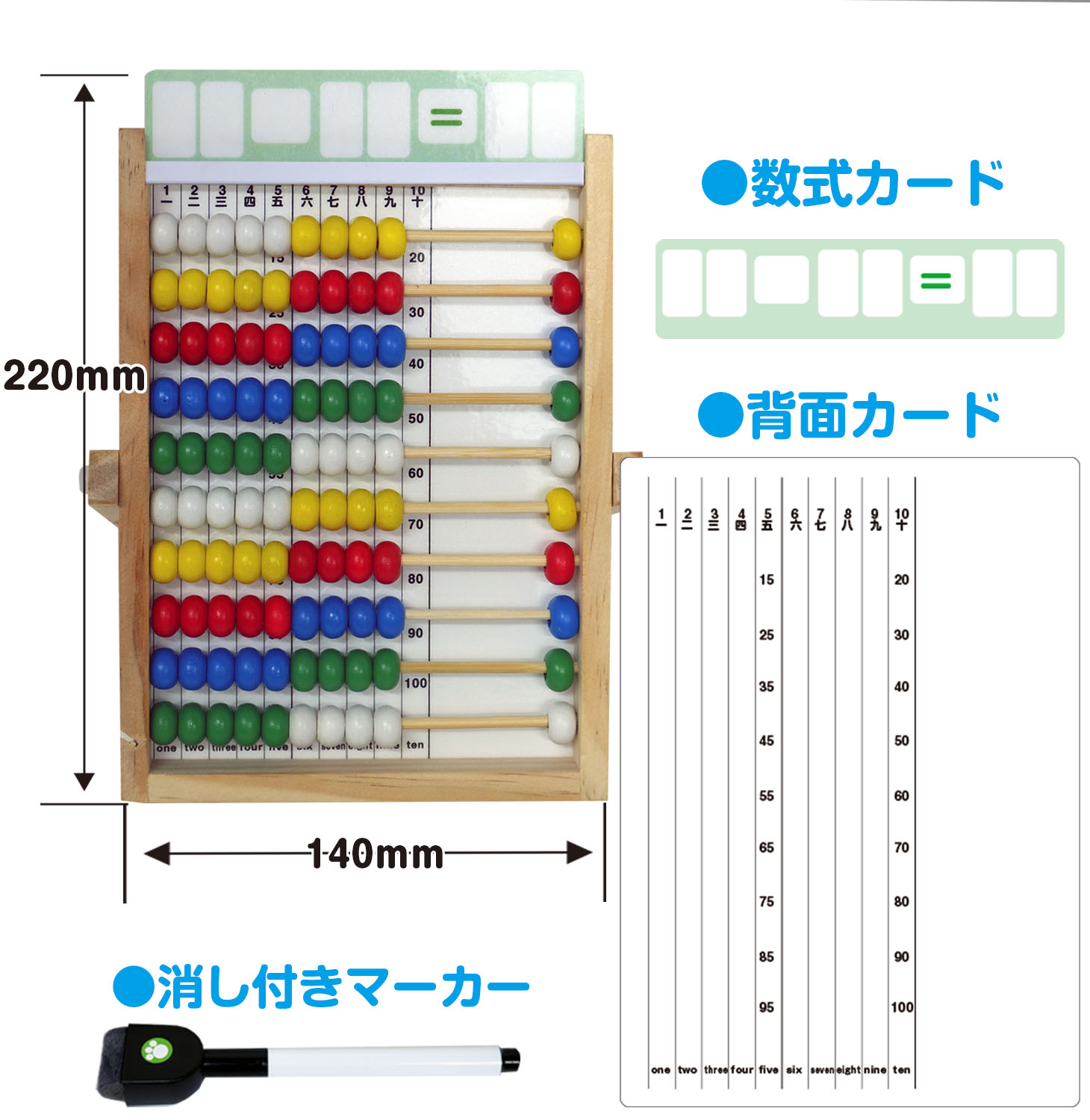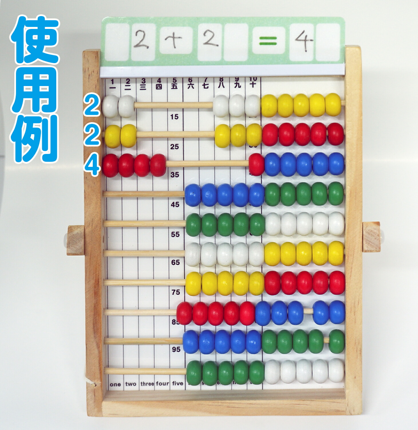 玉を動かしていくことで、数の数え方や、たし算やひき算などの計算を【目で見て】【手で数える】から視覚的に分かりやすく繰り返し遊んでいるうちに数字に強くなる知育玩具です。