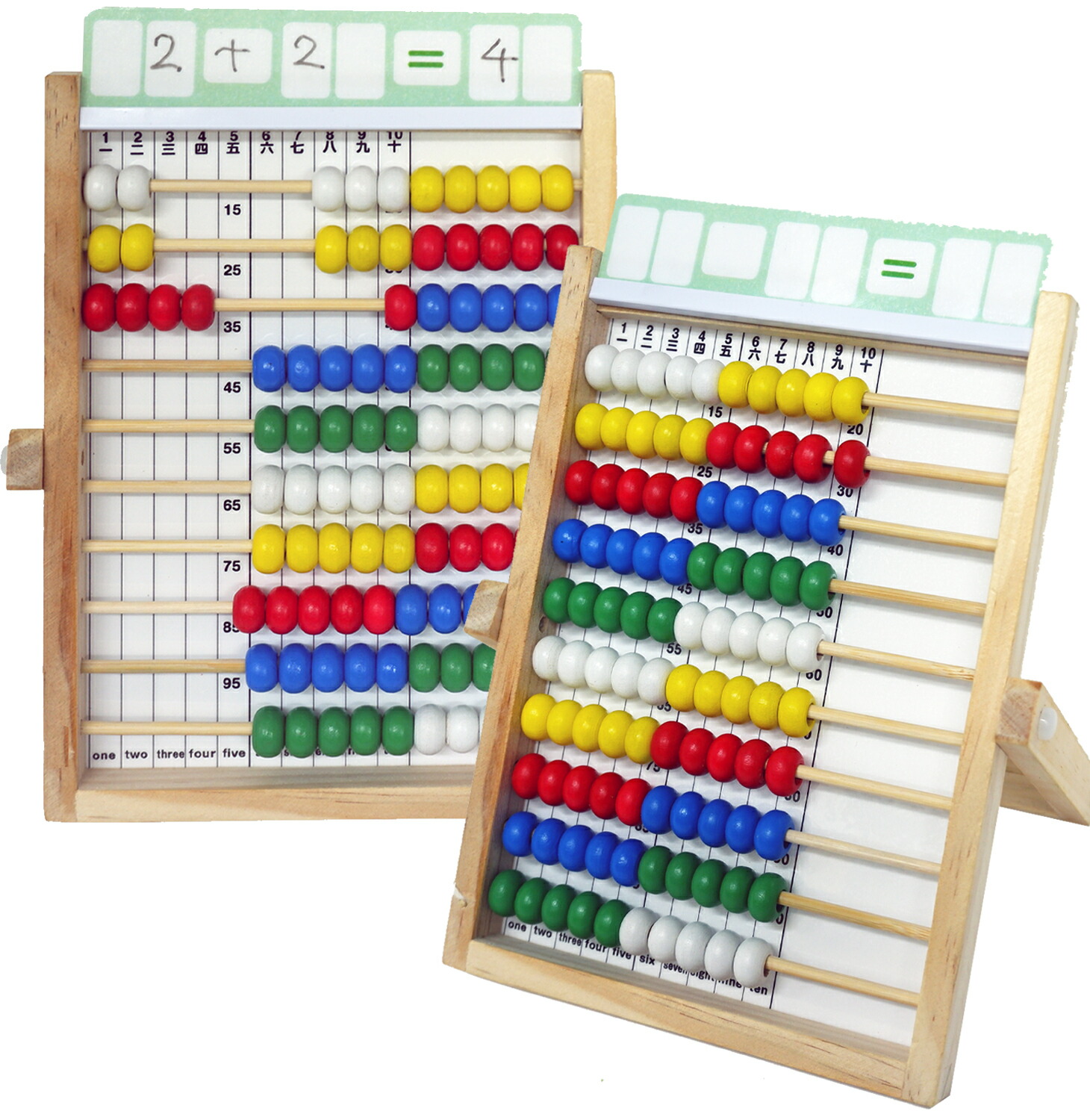 100玉そろばんは、1~100までの数の数え方や、たし算・ひき算・かけ算・わり算の算数の基礎が遊びながら学ぶことができます!
