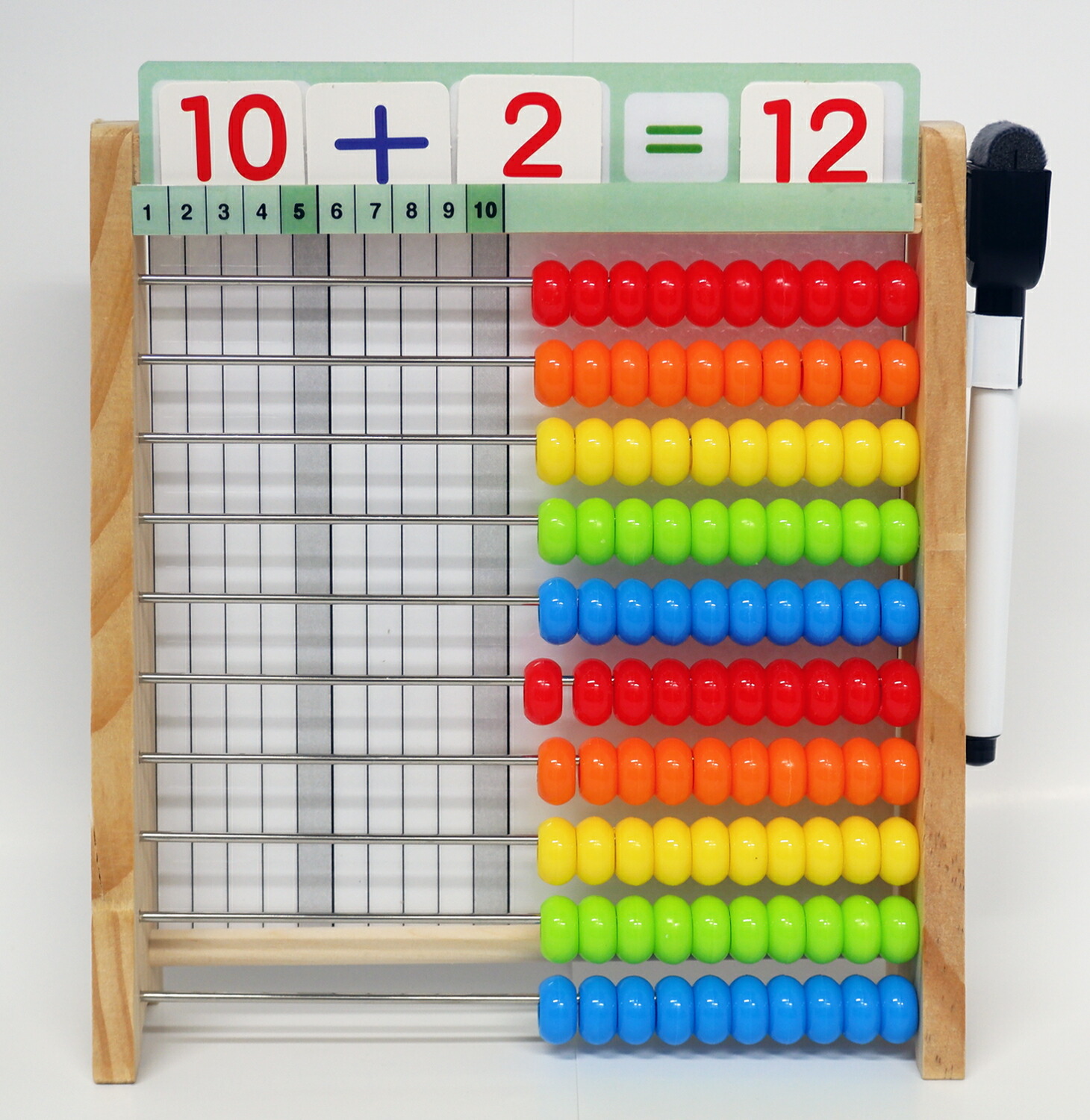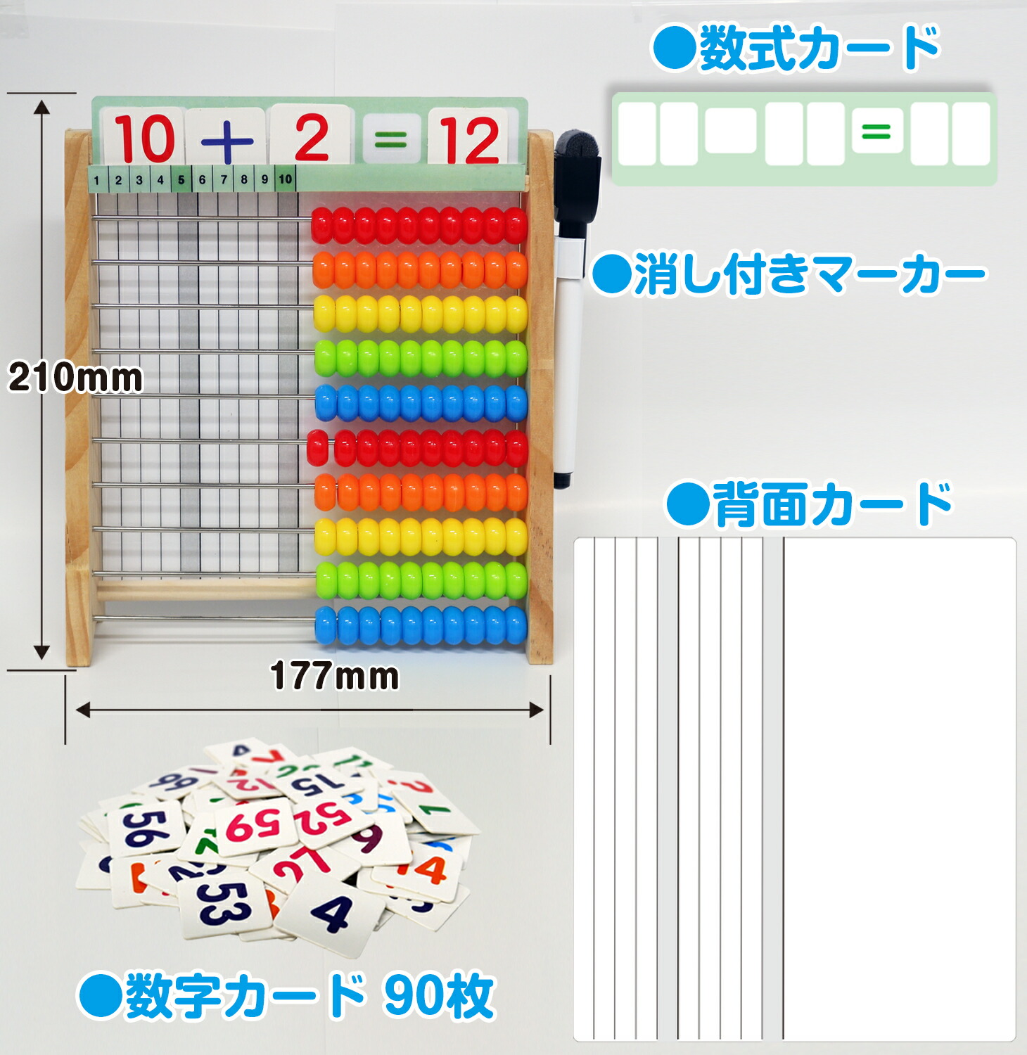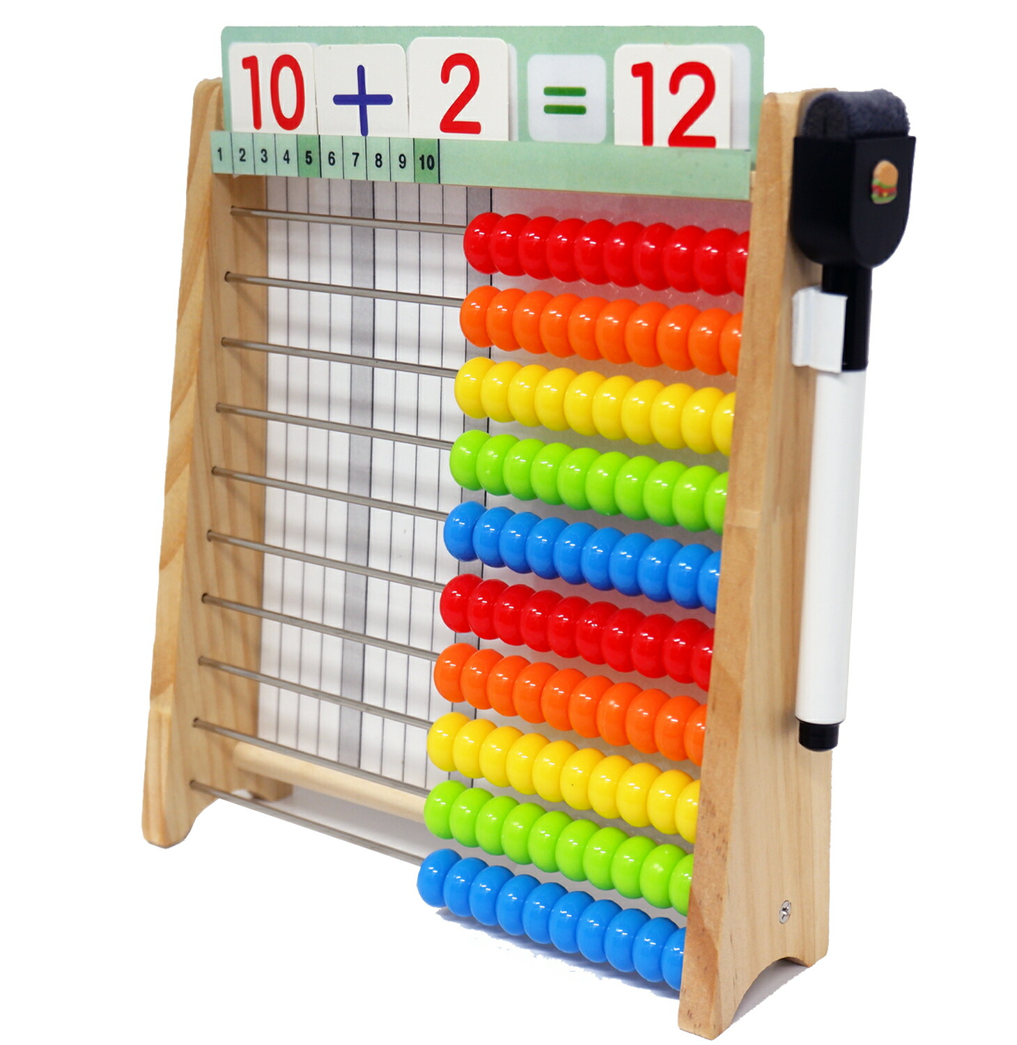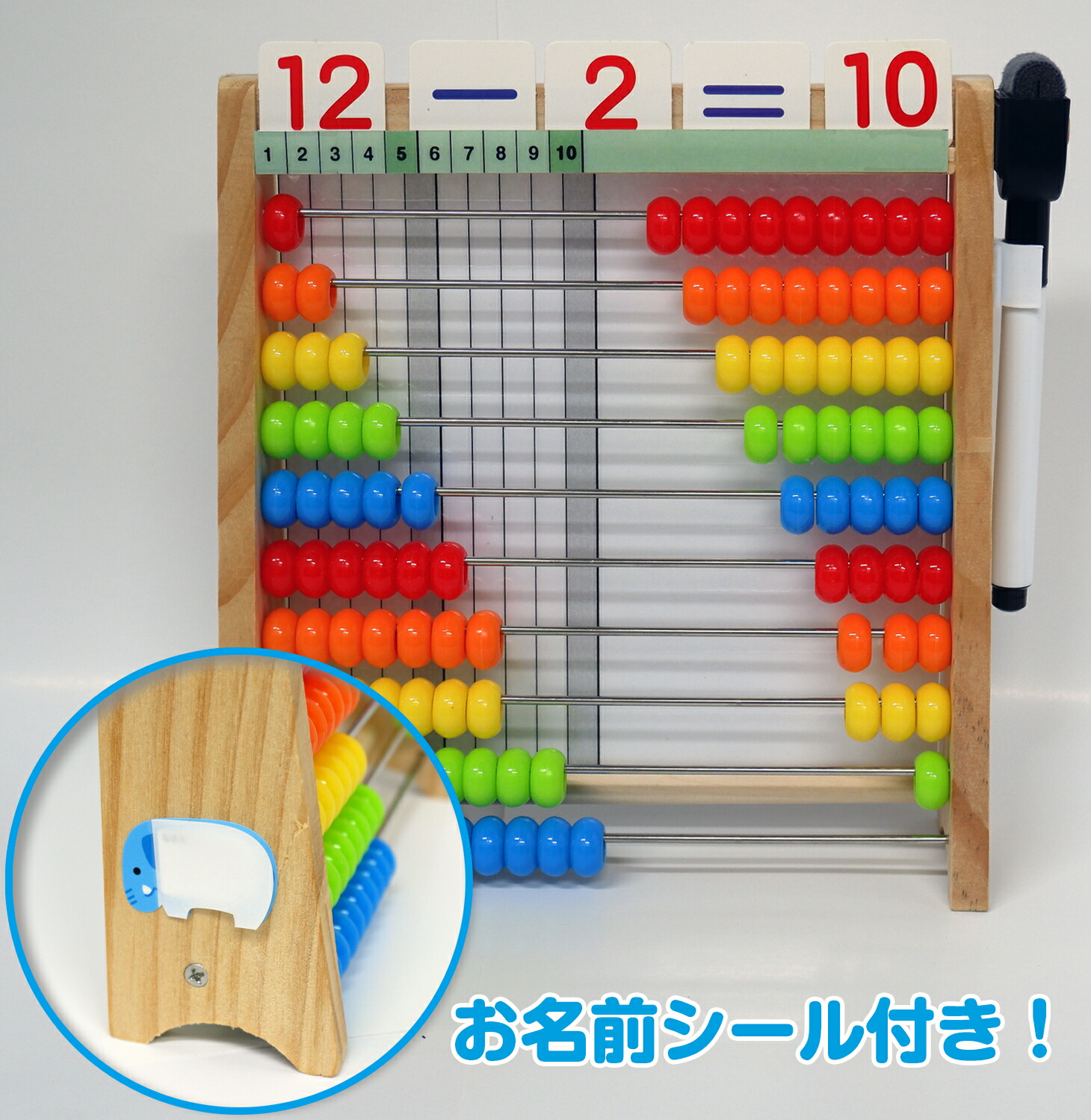 玉を動かしていくことで、数の数え方や、たし算やひき算などの計算を【目で見て】【手で数える】から視覚的に分かりやすく繰り返し遊んでいるうちに数字に強くなる知育玩具です。