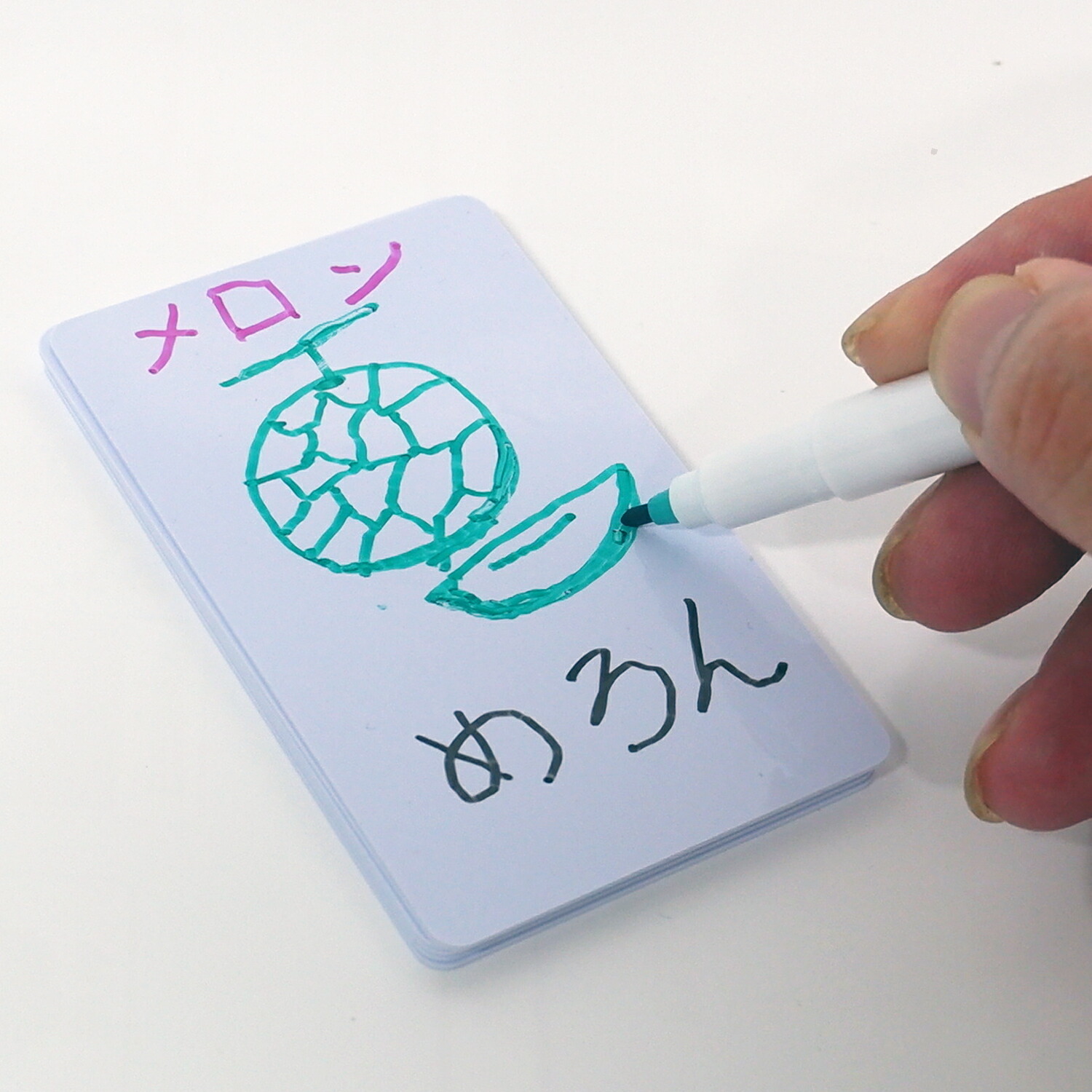 ホワイトボードマーカーで書いたり、シールを貼ったりするとあなただけのオリジナルカードを作成することができます。